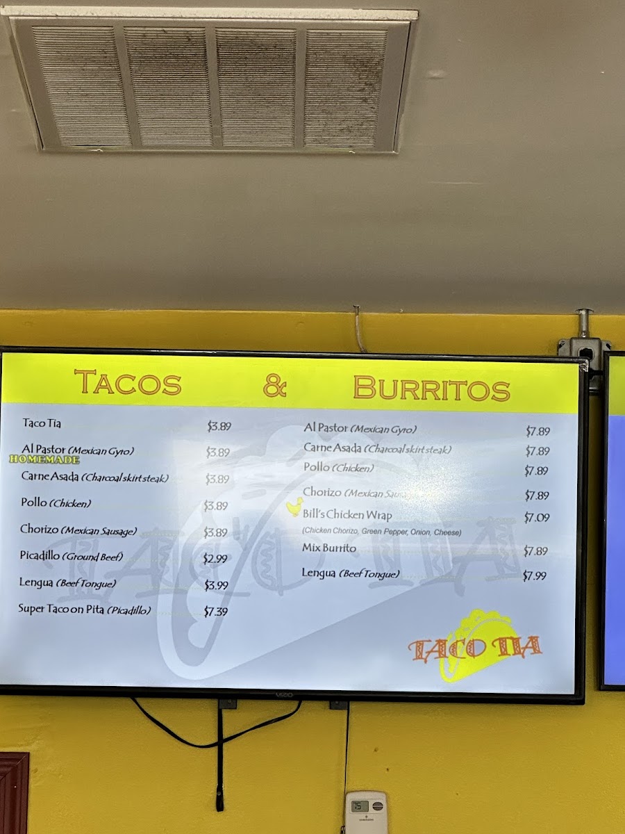 Taco Tia Menu